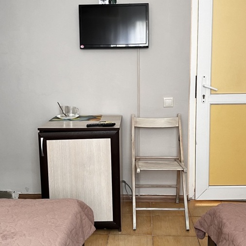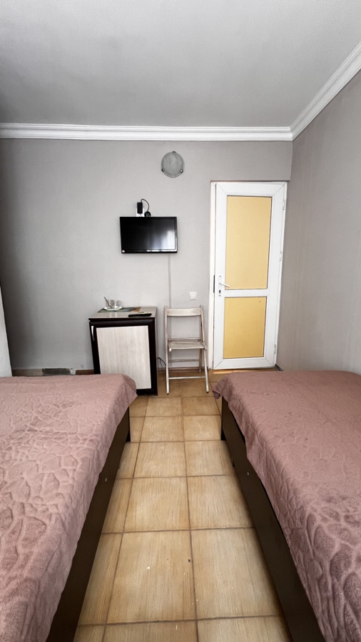 Номер для тех, кто хочет недорого отдохнуть, и важно, чтобы санузел был в номере. Номер без балкона. Вид из окна - на внутренний двор.