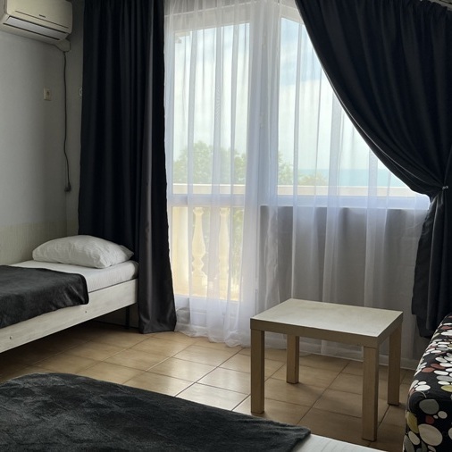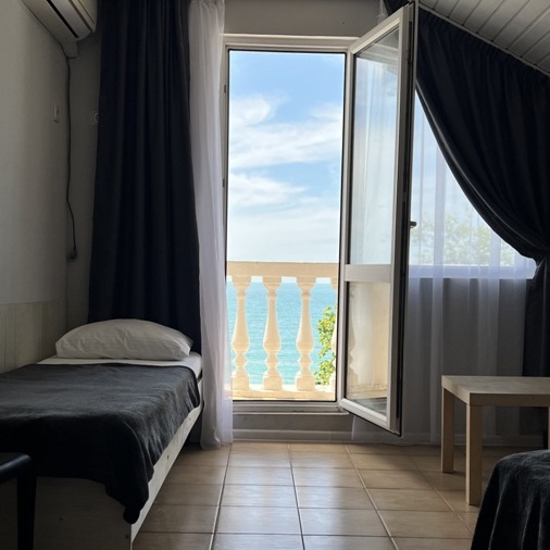 Недорогой номер с личным балконом с видом на море для семьи из 3-4 человек.