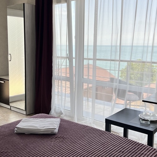 Недорогой номер с личным балконом с видом на море для семьи из 3-4 человек.