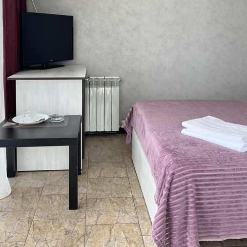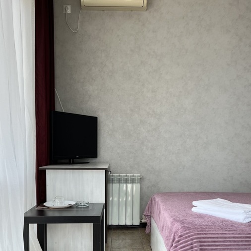 Большой комфортный номер с перегородкой посередине (при желании можно закрыть, чтобы не мешать друг другу). Личный балкон.