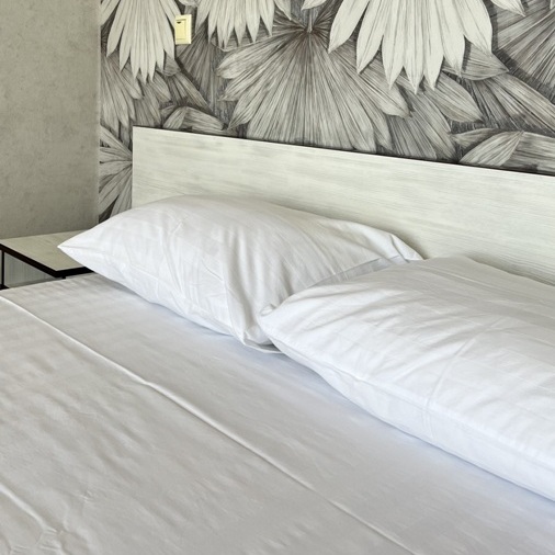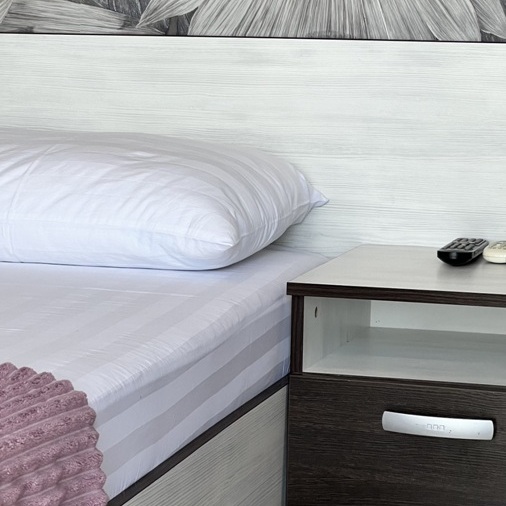 Сатиновое постельное белье, мягкие пледы. Выдаем по 2 белых полотенца на человека. Жидкое мыло и туалетная бумага в санузле с душем.